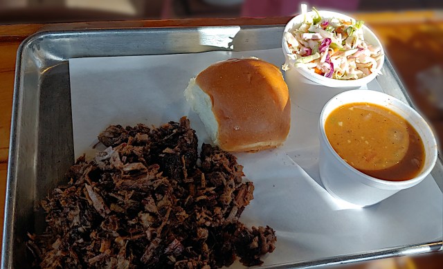 Smoke Shack is also a Texas style BBQ place, where you place your order at the counter. Here, though, the food is brought to your table. The meat options are the classics: Brisket, Pulled Pork, Sausage, Turkey, Ribs, and Chicken. Sides are also classics. Among them are Mac N’ Cheese, Pinto Beans, Spicy Cream Corn, and Fried Okra. There is also a combination platter with 1, 2, or 3 meats; 2 sides; and a roll.