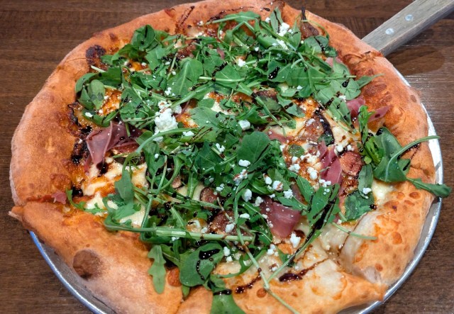 Monday night is $10 burger night, which is a very good deal. The selection of burgers was tempting, but what drew me to the restaurant was one of their pizzas, the Fig and Prosciutto, and I felt compelled to order it. I’ve had fig topped pizzas before, and they often disappoint. Not here! The pizza was covered with figs thinly sliced, giving it the strong fig taste I was looking for. And there was a plentiful amount of goat cheese, Enough so that you know it is there without dominating the taste. The prosciutto and a balsamic glaze provided nice accents, while the arugula spread on top gave it a nice bit of green. The crust was crisp and chewy. Overall, a fantastic pizza. I highly recommend it.