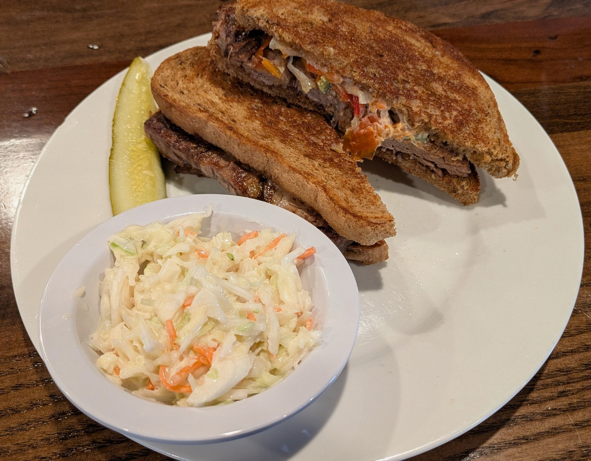 One of the sandwiches caught my eye: the StoneBrueben. It is a Reuben made with brisket instead of corn beef. Wanting some vegetables, I ordered a side Caesar. (There was only one other side salad listed on the menu, so I assumed the est of the salads do not have side portions.)