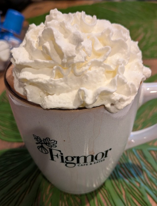 We were there on a cold winter day and I was interested in a hot beverage. Not being a coffee drinker, I was happy to find Hot Chocolate among the drinks on the menu. I could not resist. It had a good chocolate taste. And with plenty of freshly made whipped cream on top, it had just the right amount of sweetness.