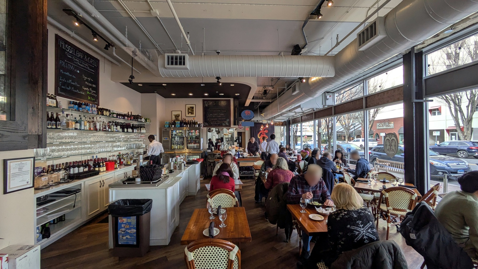 Mussel Bar & Grill has an expansive dining area that is longer than it is wide. The tables are close together, giving the place a warm and cozy feel. It reminds me of the bars in Brussels. The wait staff is friendly, as was the manager. I had a nice conversation with him about the upcoming winter storm.