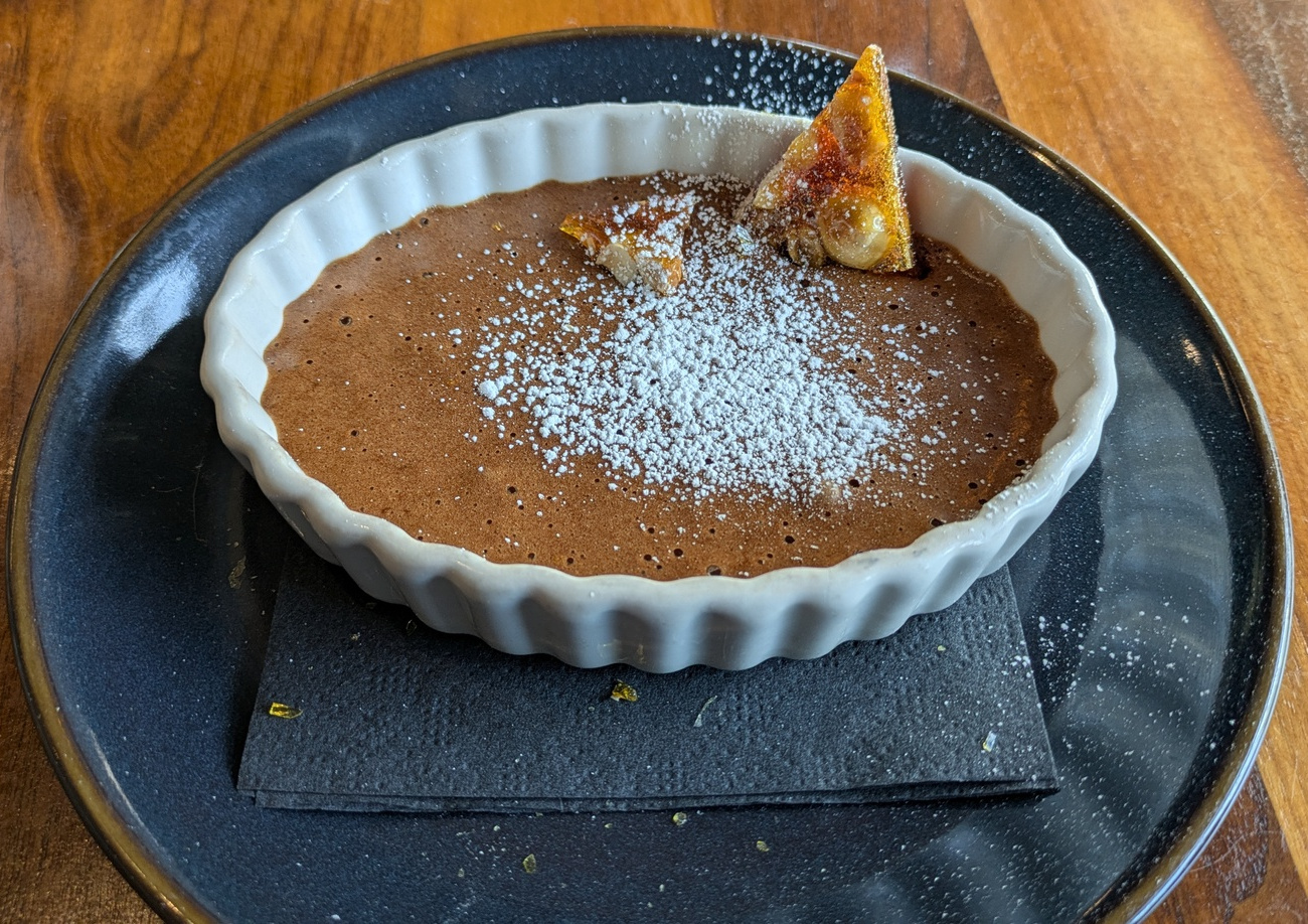 The dessert choices were two: a Liege Waffle or Chocolate Mousse.