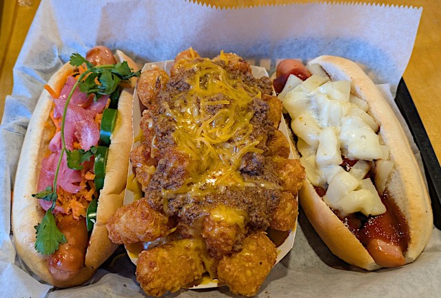 But my favorite dish overall was one of the sides. City Dogs has a good selection of sides – hand cut fries, tater tots, onion rings, cheese curds, etc. I ordered the Chili Cheese Tots and they are fantastic. The tots have a good crisp on the outside, but soft on the inside. And they are loaded with a delicious, meat filled Chili. The cheese was not quite as generous, but there was a good amount. I would go to Chili Dogs just for these Tots.